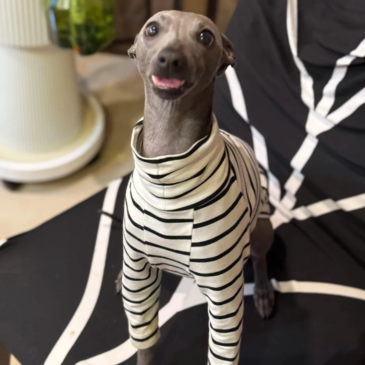 White Striped Cotton for Bedlington Dog Clothes Long Sleeves Undershirt for Little Greyhound High-neck Loungewear for Poodle Dog
