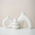 White Vase Home Decor Set of 3 Modern Vase for Table Decor, Nordic Flower Ceramic Vases for Bookshelf, Entry Way, Dining Desk