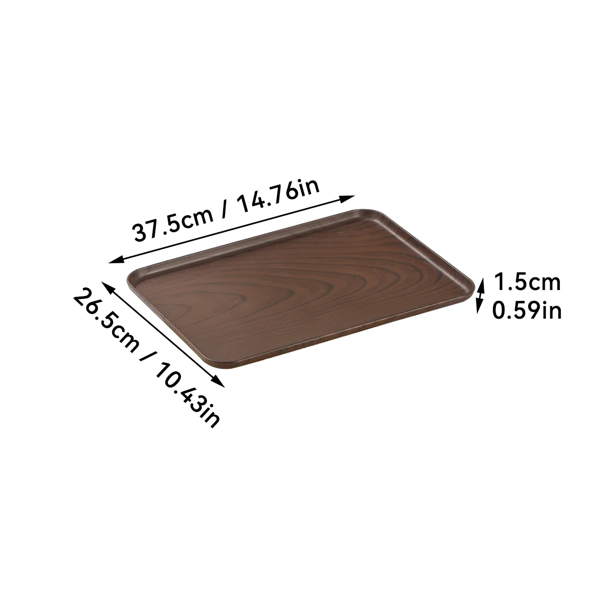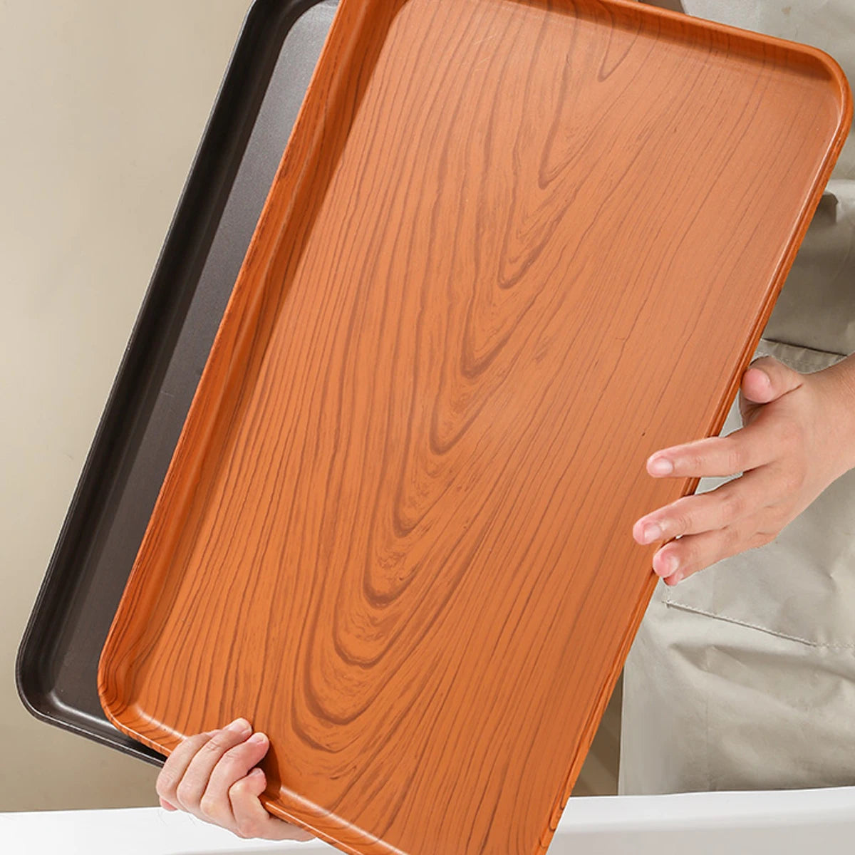 Wood Grain Plastic Food Serving Tray Stackable Dessert Fruit Tray Tea Tray Large Capacity Storage Tray Kitchen Stoage Organizer