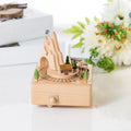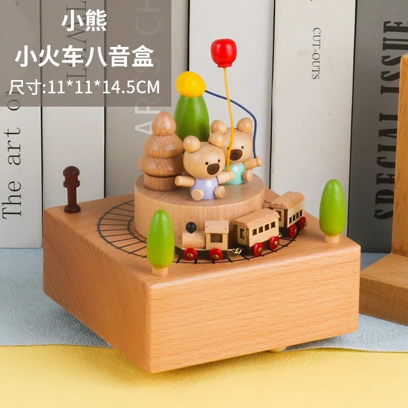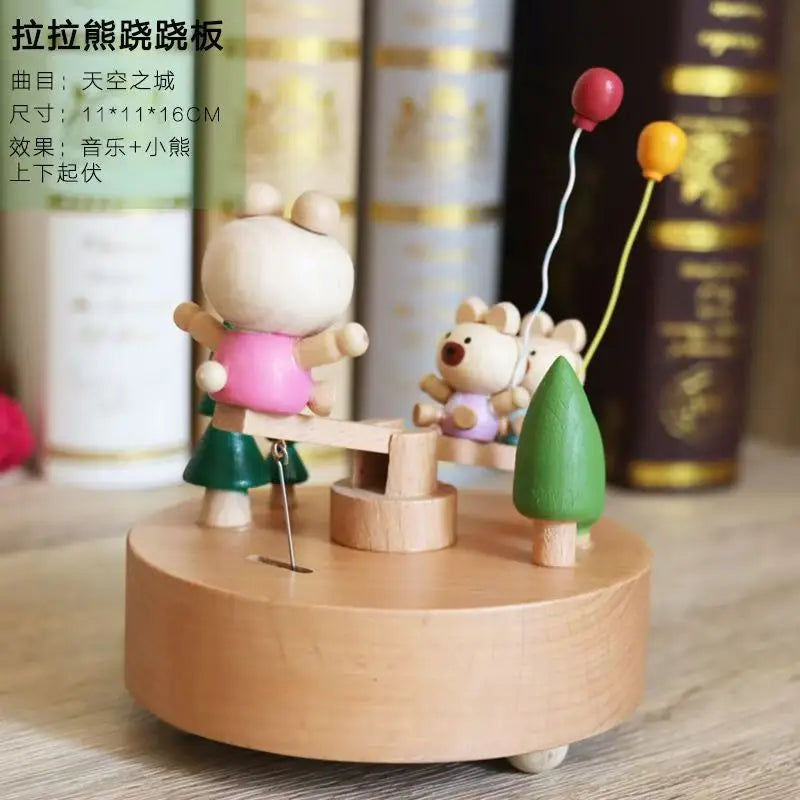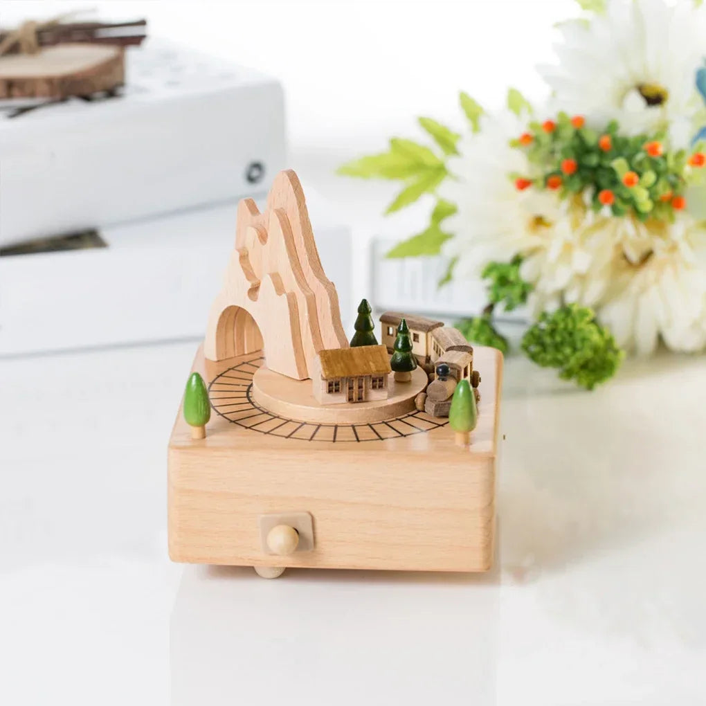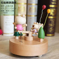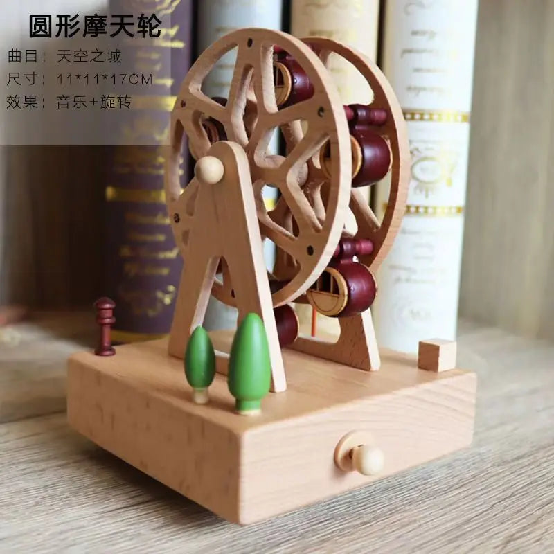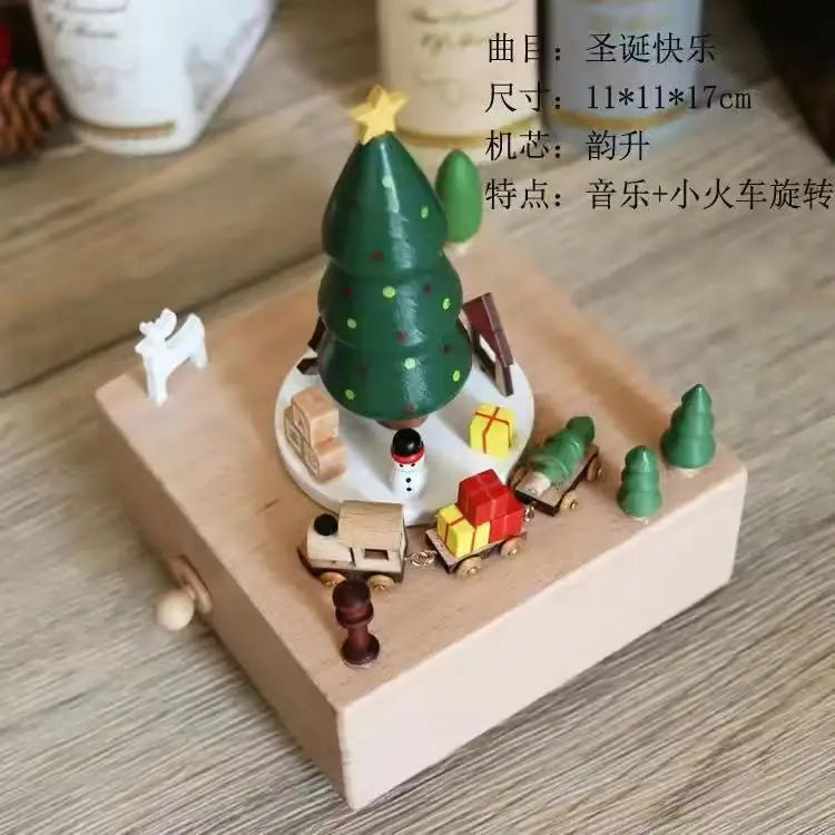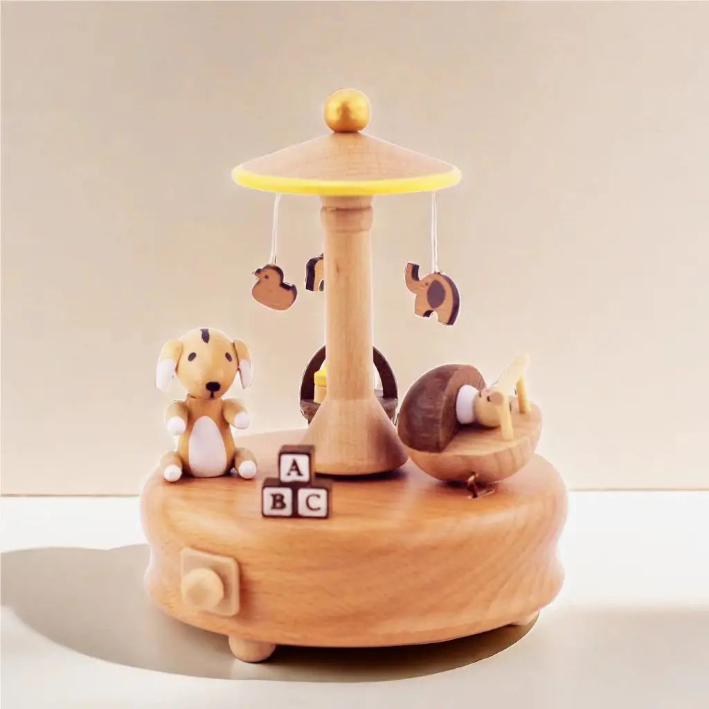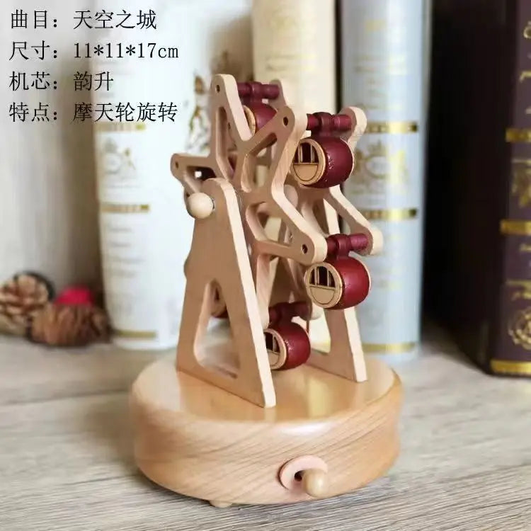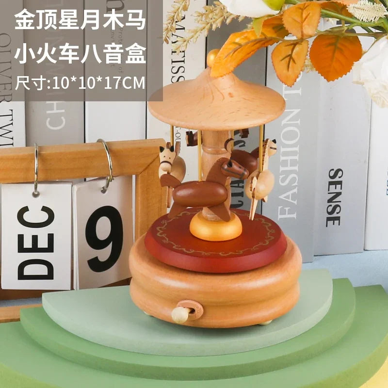 Wooden Carousel Music Box Ornaments Rotatable Hand-cranked Music Box DIY Handmade Birthday Christmas Gift Children’s Toys