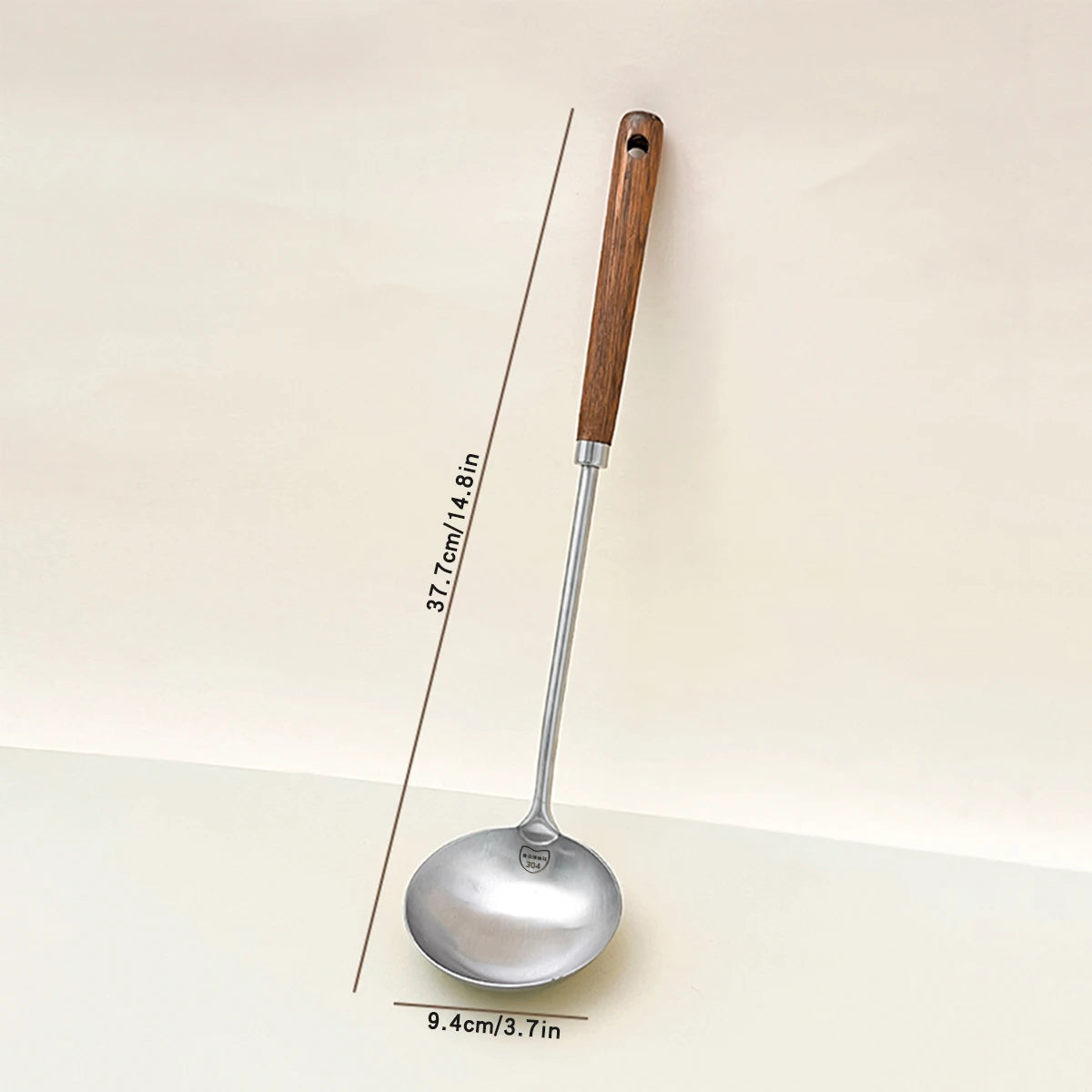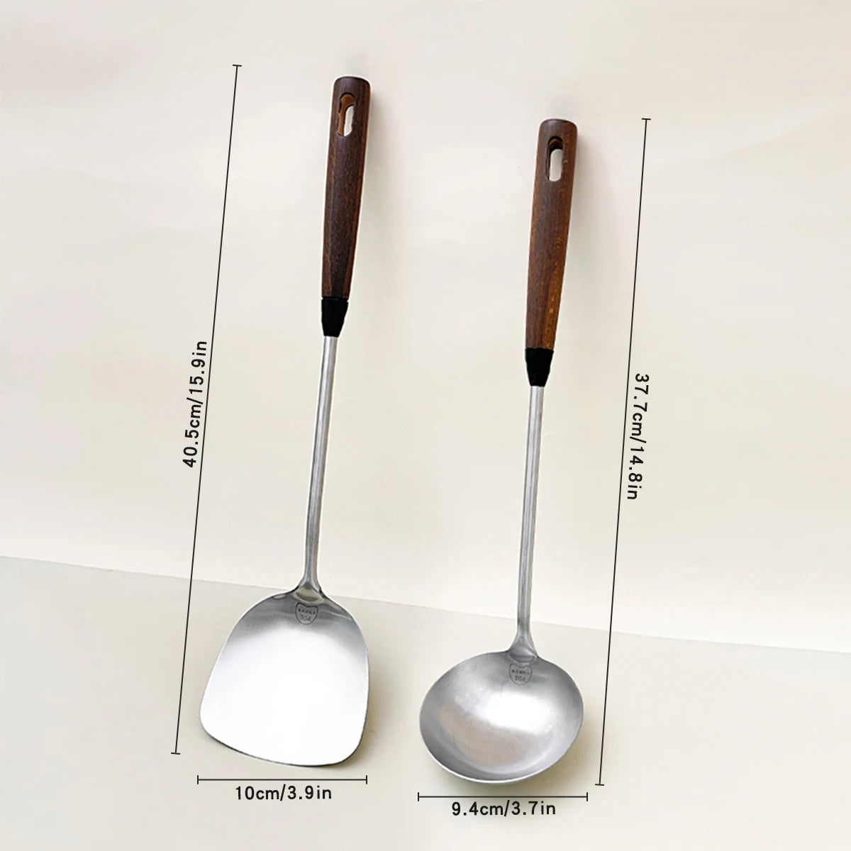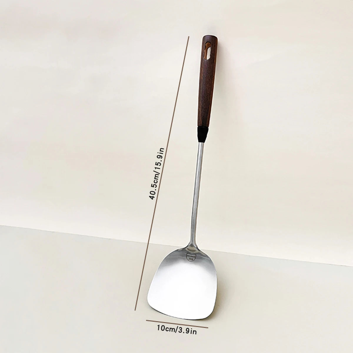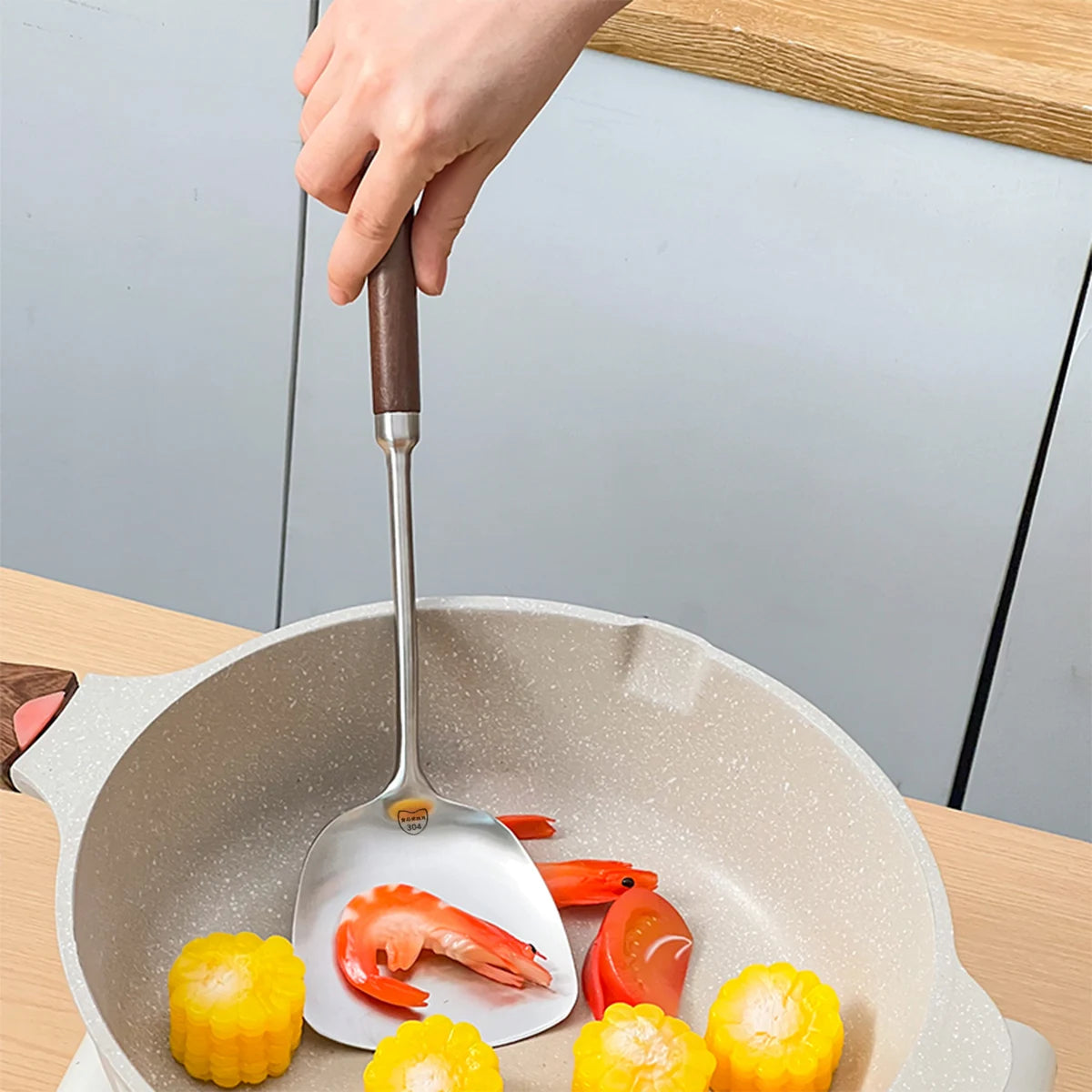 WORTHBUY Kitchen Utensils 304 Stainless Steel Wooden Handle Turner Soup Spoon Heat Resistant Non Stick Spatula Cooking Tools