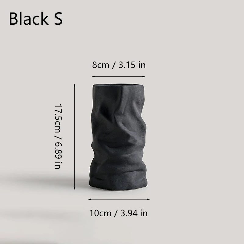 Wrinkled Vase Ceramics Simple Flower Arrangement Advanced Feeling Black White Home Living Room Desktop Decoration Gift