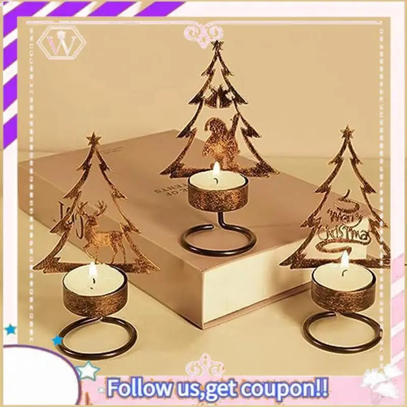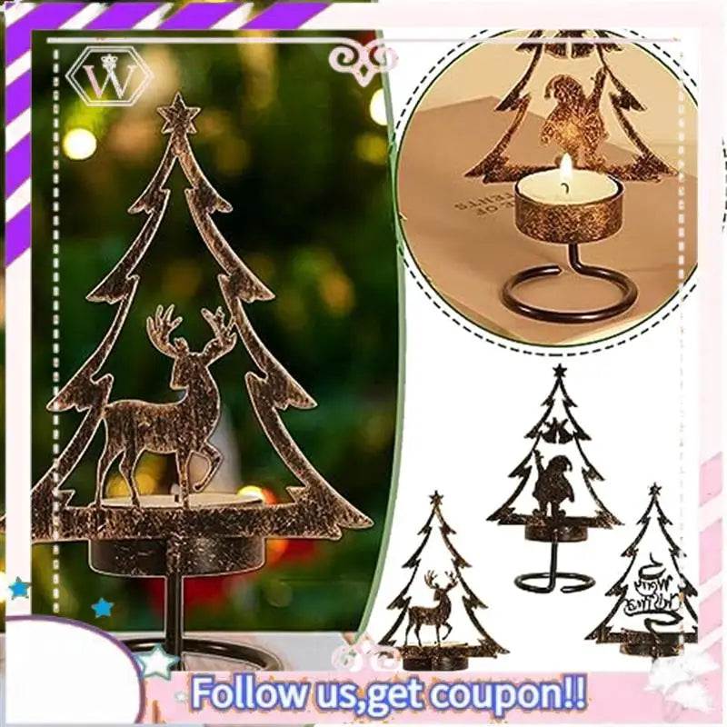 Y74A-Metal Candle Holder Christmas Matle Table Centerpiece Reindeer Christmas Tree Santa Clau Dinner Tea Light Holder Easy Insta