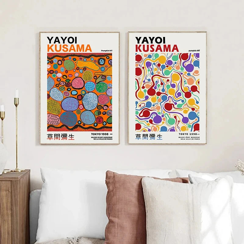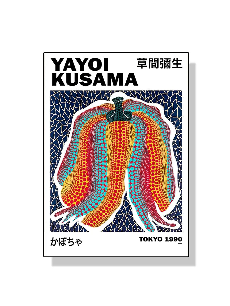Yayoi Kusama Art Exhibition Pumpkin Flower Wall Art Poster Prints Abstract Canvas Painting Picture for Modern Room Home Decor
