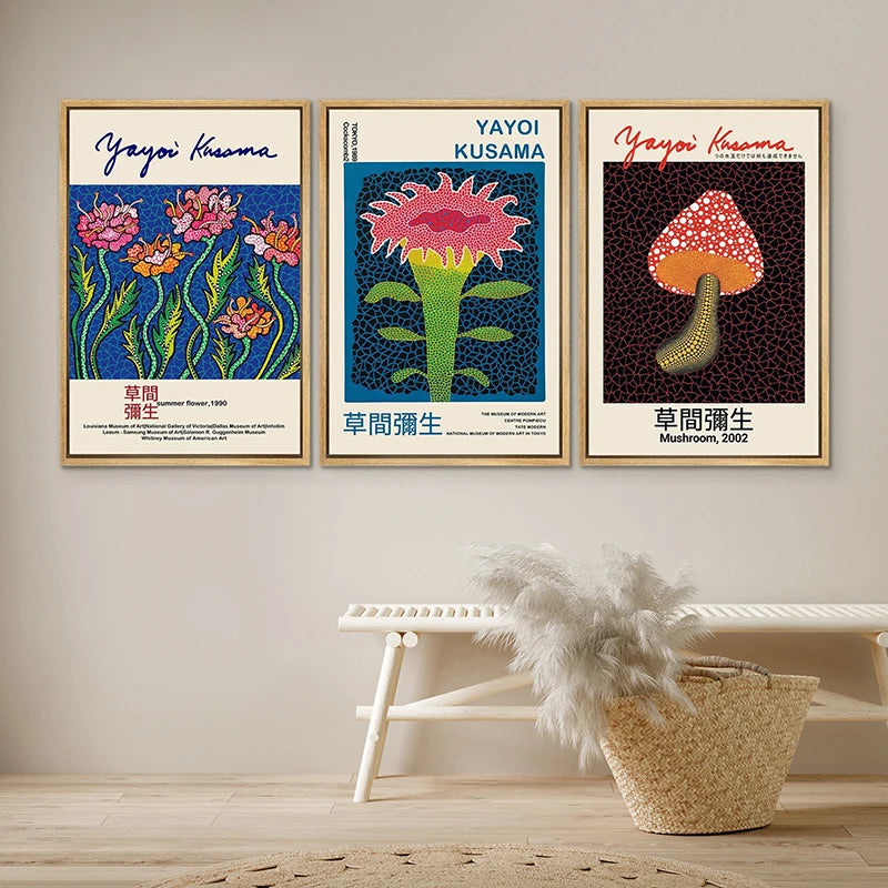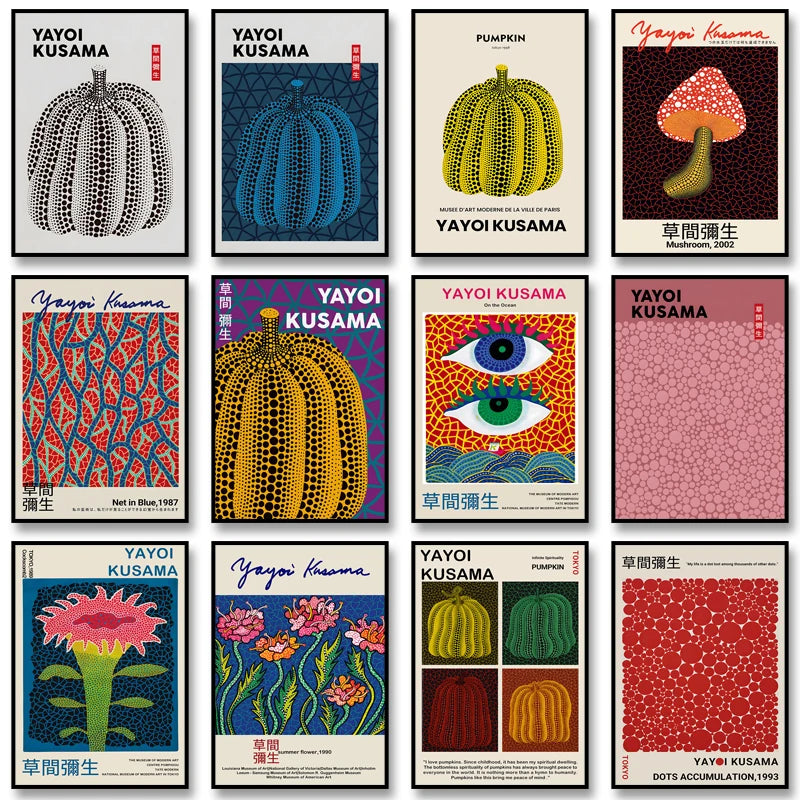 Yayoi Kusama Poster Bauhaus Japanese Modern Art Minimalist Print Floral Botanical Abstract Wall Art Canvas Painting Home Decor
